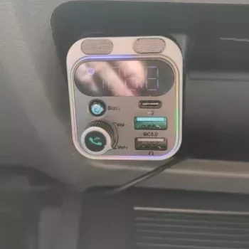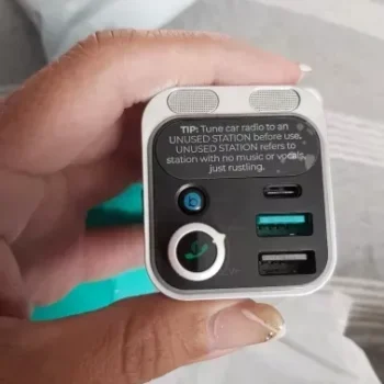 It works really well and the audio quality is top-notch, super easy to use too. It also supports 25W Super Fast Charge on my Samsung phone with the USB-C port, which was a nice surprise. Just a heads up, if you hear weird whining noises that change with engine RPM, it's not the device's fault but electrical interference with the car's 12V system. Some cars have this issue. To fix it, you can power the device with a power bank that has a 12V outlet, or if you're into electronics, use two 9-volt batteries in series with alligator clips. This gadget can handle up to 24 volts perfectly. Just don't charge your phone with it when using the 9V batteries setup. This way, you can get rid of any interference noise and enjoy amazing audio quality.
