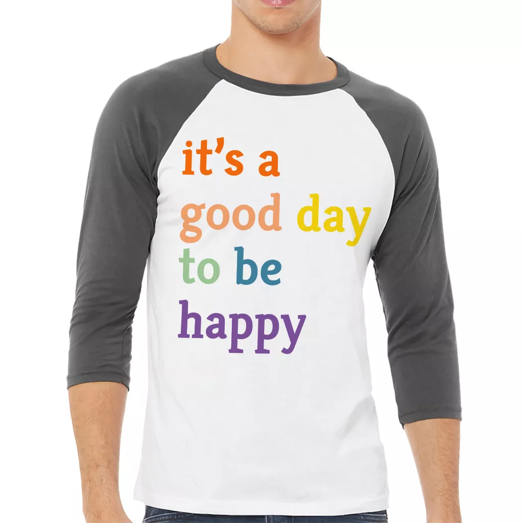 features raglan 3/4 sleeves and a modern fit that is perfect for a day