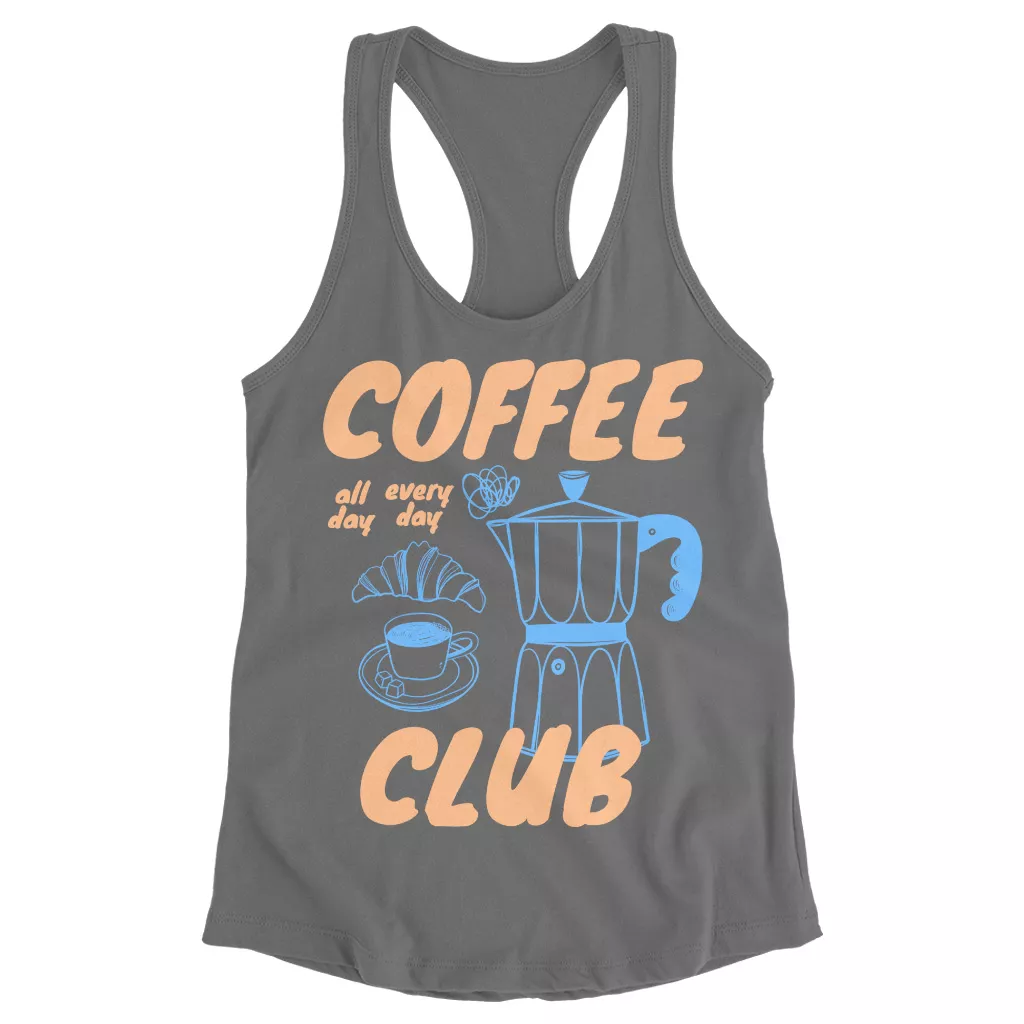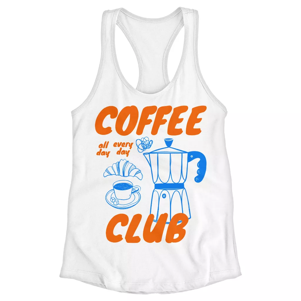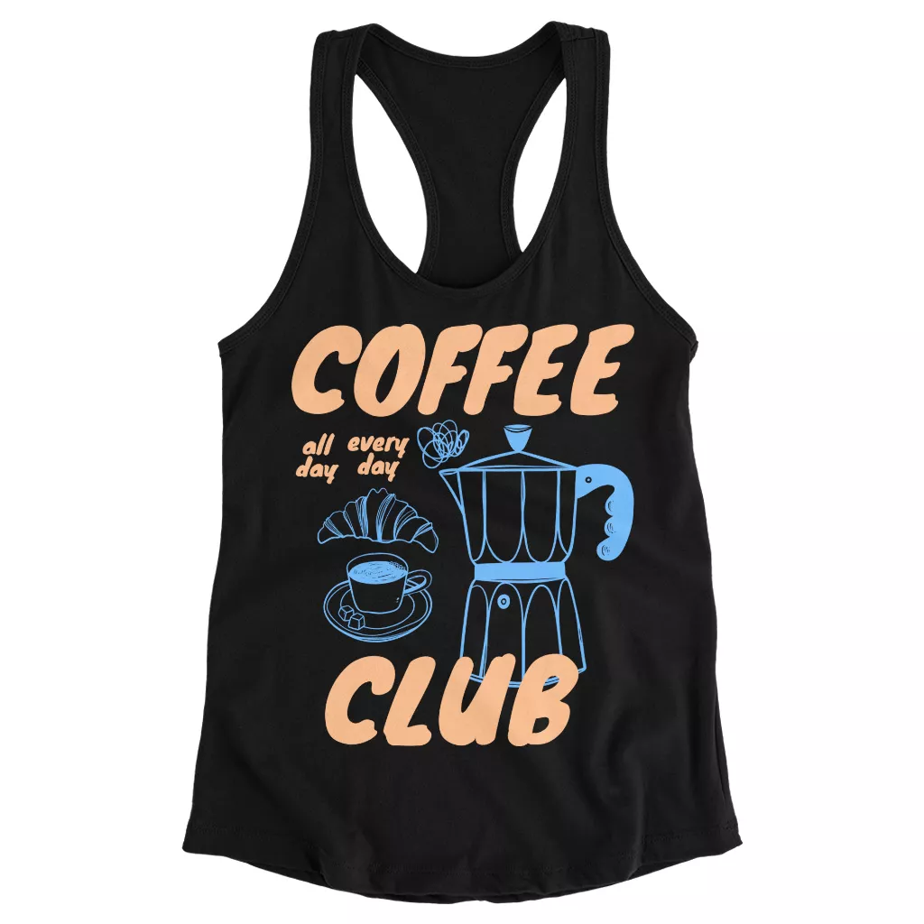 Coffee Club Racerback Tank is no ordinary piece of clothing. Its side-seamed detail and flatlock-finished hems provide a retail fit for clothing that’s true to size.