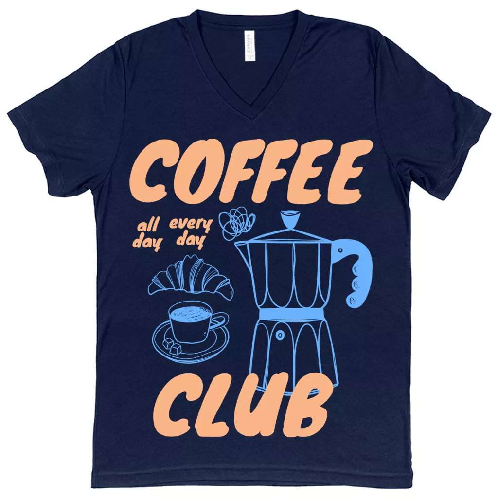 Coffee Club V-Neck T-Shirt is proudly made with 7x less water than average manufacturers, in recycle-friendly facilities that also guarantee zero sweatshop conditions