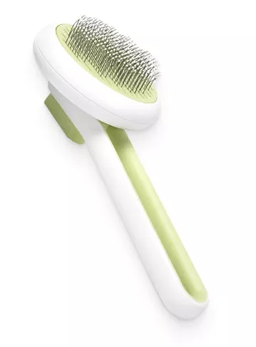 I bought this brush for my cats, they loved it so much. It's easy to use and it collects so much hair quickly, you don't have to press hard brushing, just a gentle brushing does the job, then it's easy to clean the brush and remove the hair. It's a sort of therapeutic activity. Just get it for your pets. They'd love it.