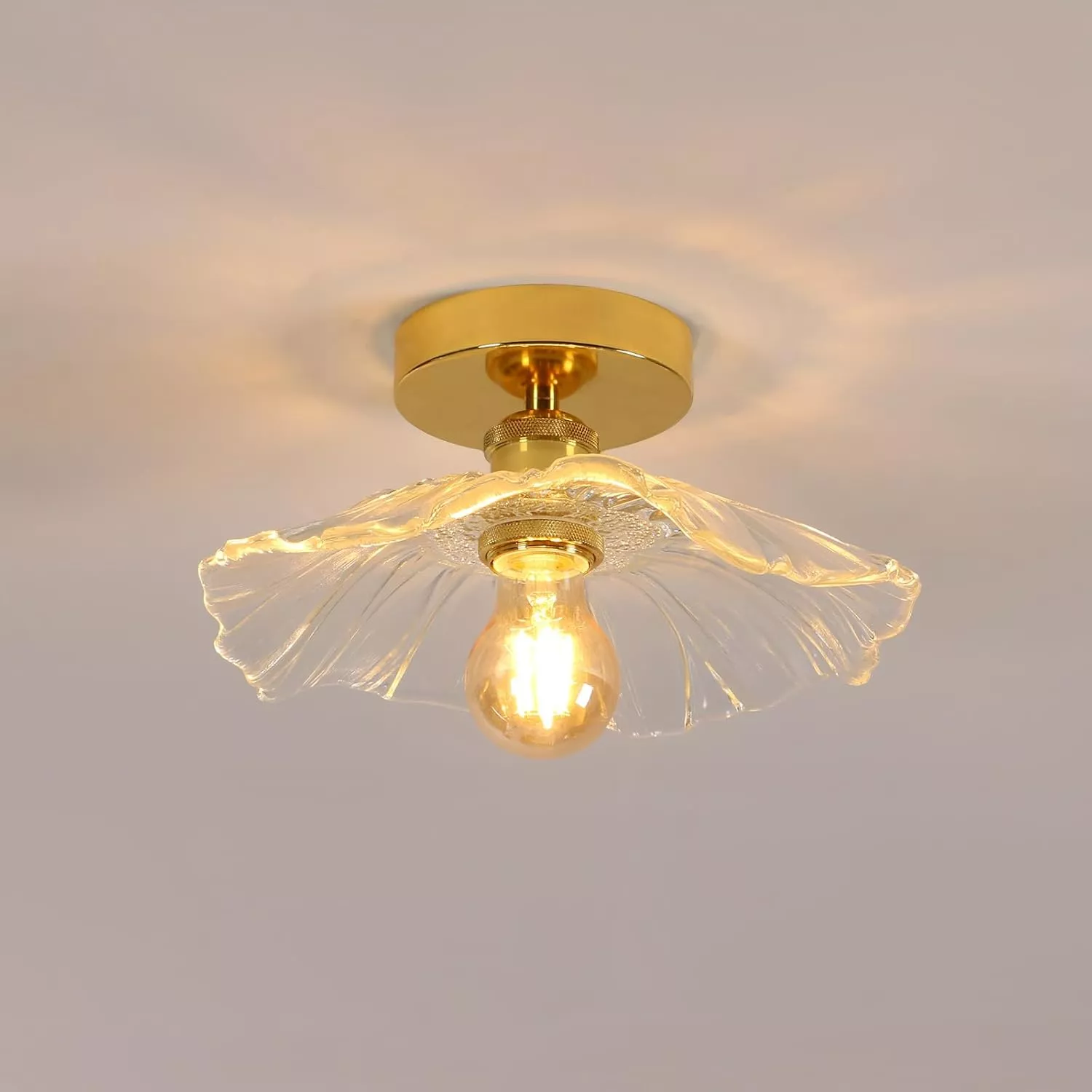 Transform any room with the captivating beauty of the Crystal Lotus Leaf Ceiling Light. Inspired by the delicate shape of a lotus leaf, this modern ceiling lamp combines exquisite crystal detailing with a luxurious gold finish, creating a stunning focal point for your home. Whether installed in a corridor, bedroom, foyer, or balcony, this light fixture adds a sophisticated touch while providing a warm and inviting glow.