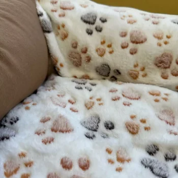 Charming Design: Adorned with a delightful paw print pattern, this blanket isn’t just comfortable; it’s also a cute addition to your home decor. Let your pet rest in style!