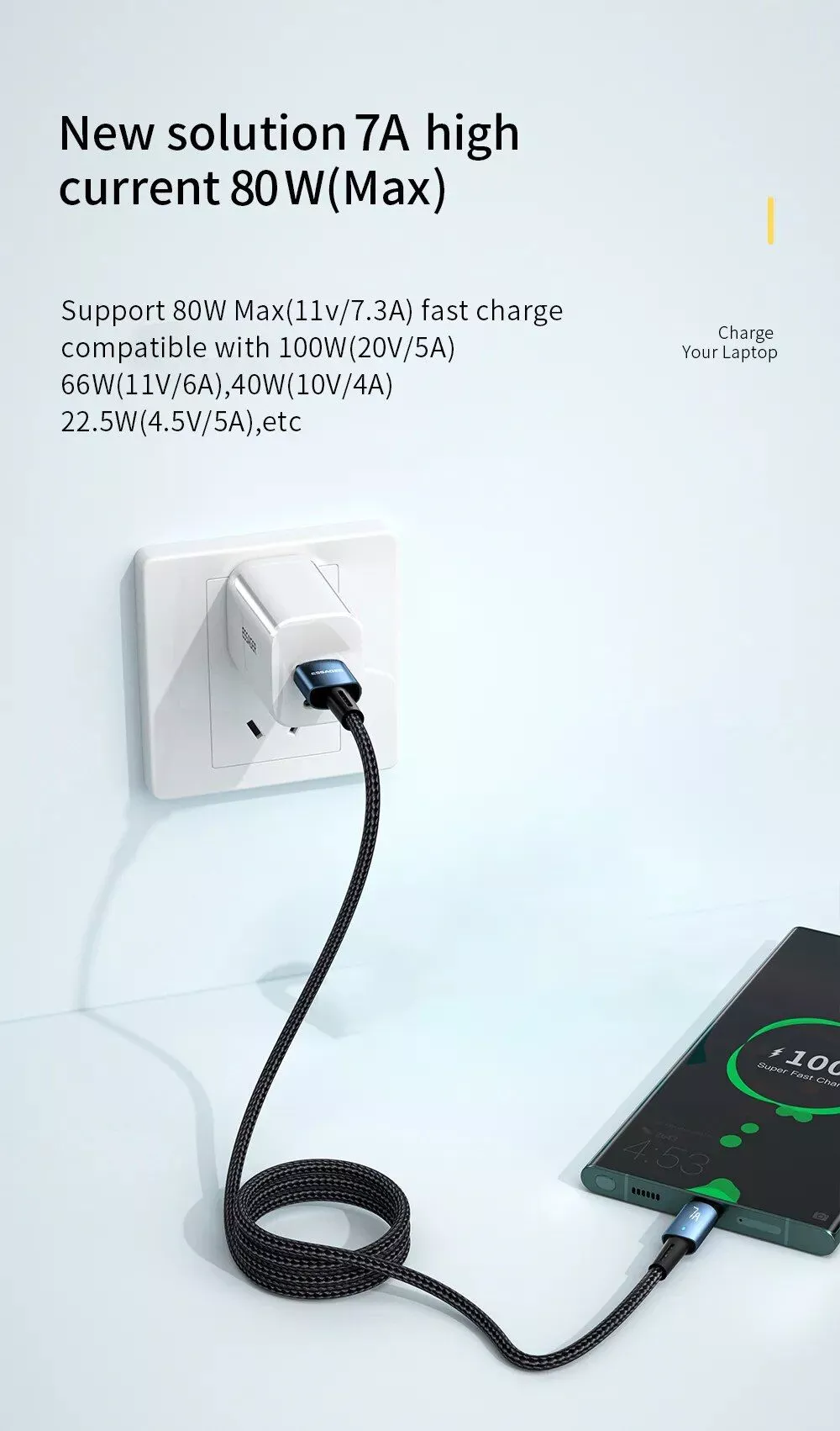 ESSAGER USB A to USB C Cable build in intelligent chip,which ensures safe charging up to 80W (11V/7.3A)MAX power output for your mobile phones at full speed.The laboratory test mobile phone model is OPPO k10 pro