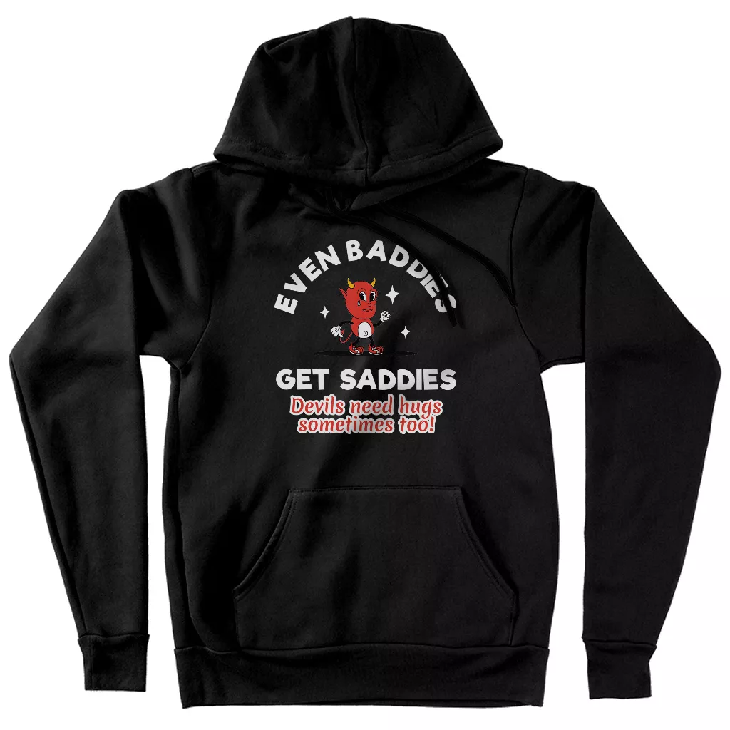 Check out Even Baddies Get Saddies Hoodie! This hoodie is perfect for those chilly days and