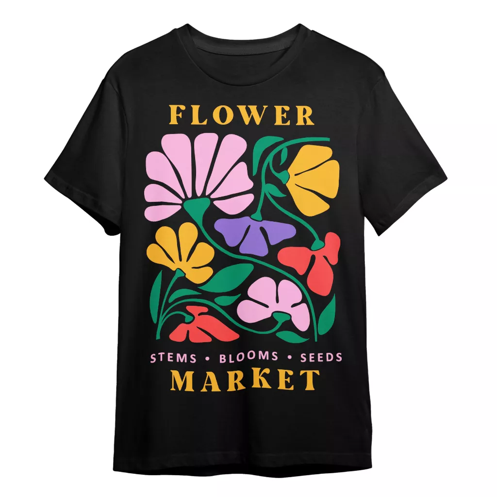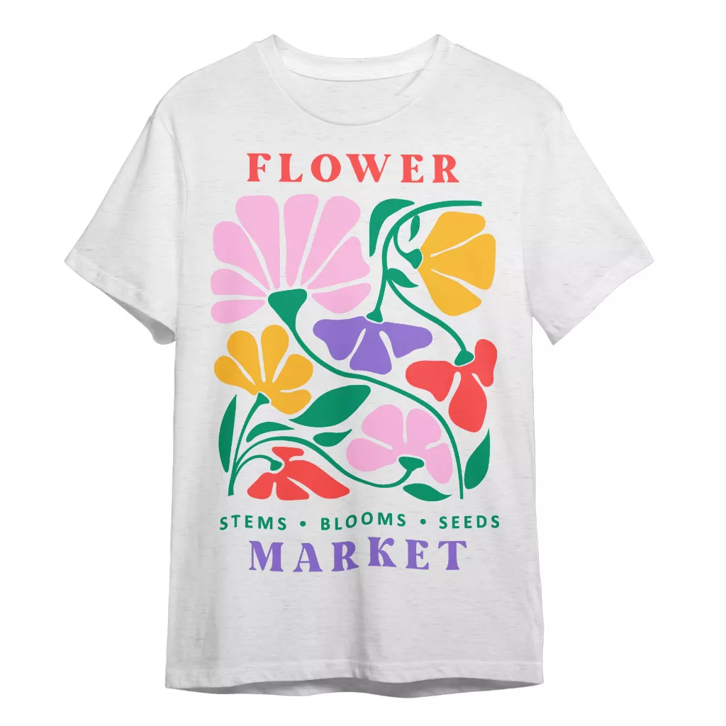 Flower Market T-Shirt is no ordinary piece of clothing. Its taped neck and shoulders, double-needle sleeve and bottom hems, and quarter-turned construction provide a retail fit for clothing that’s true to size. Wildflowers Heavy Cotton Tee is Designed and printed in California.