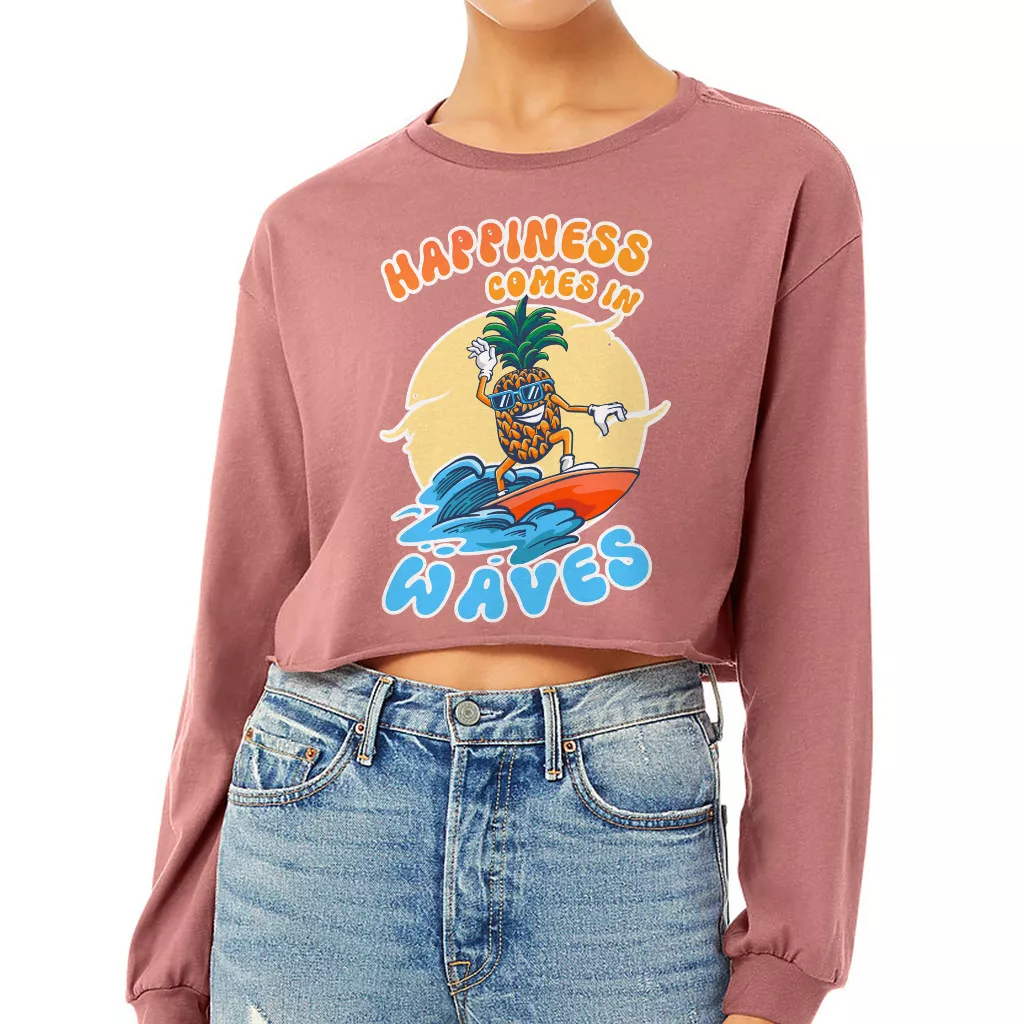 Happiness Comes In Waves Cropped Long Sleeve Sweatshirt