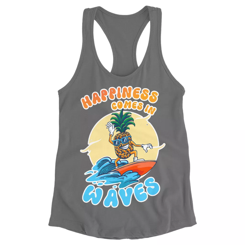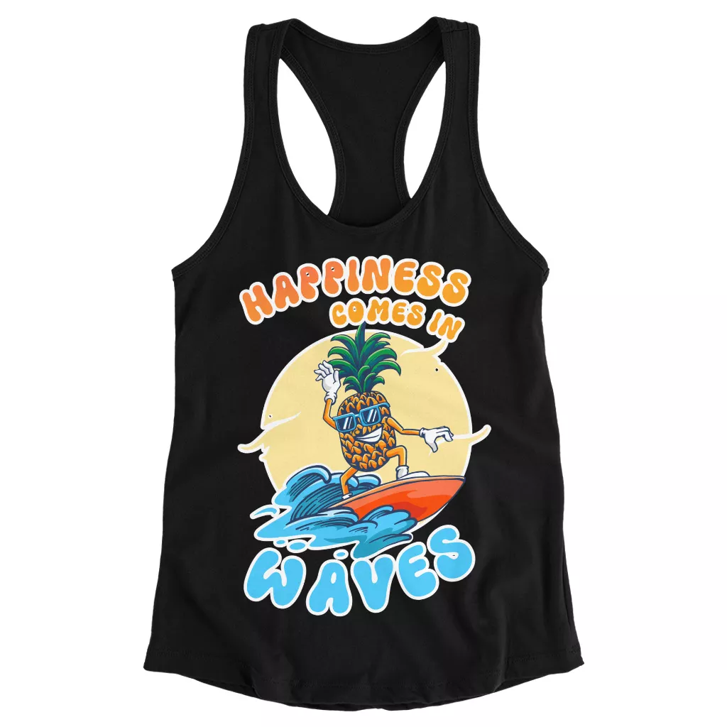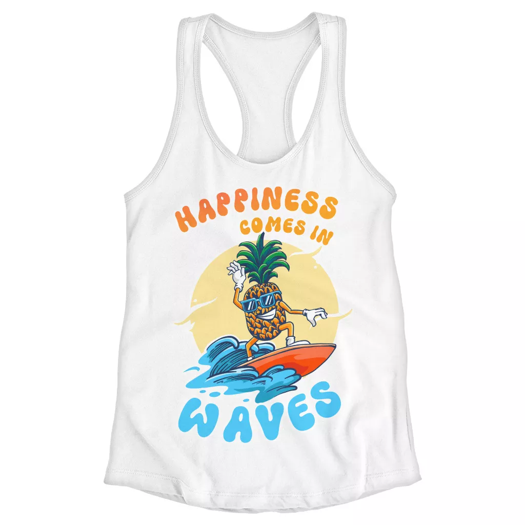 Happiness Comes In Waves Racerback Tank is no ordinary piece of clothing. Its side-seamed detail and flatlock-finished hems provide a retail fit for clothing that’s true to size.