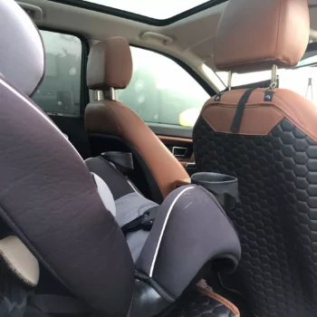 I purchased a 2017 Land Rover a few days before purchasing the Car Seat Protector and the Seat Back Protector Set Hexy One. I searched online for brown seat protectors in hope of finding something to put under a car seat to help not dent the leather. I wasn’t even looking for or expecting to find the back seat protector, but am so glad that I did! I have a 3 year old that just loves to kick the backs of our seats, so it being a new-to-me vehicle, I definitely wanted that feature!