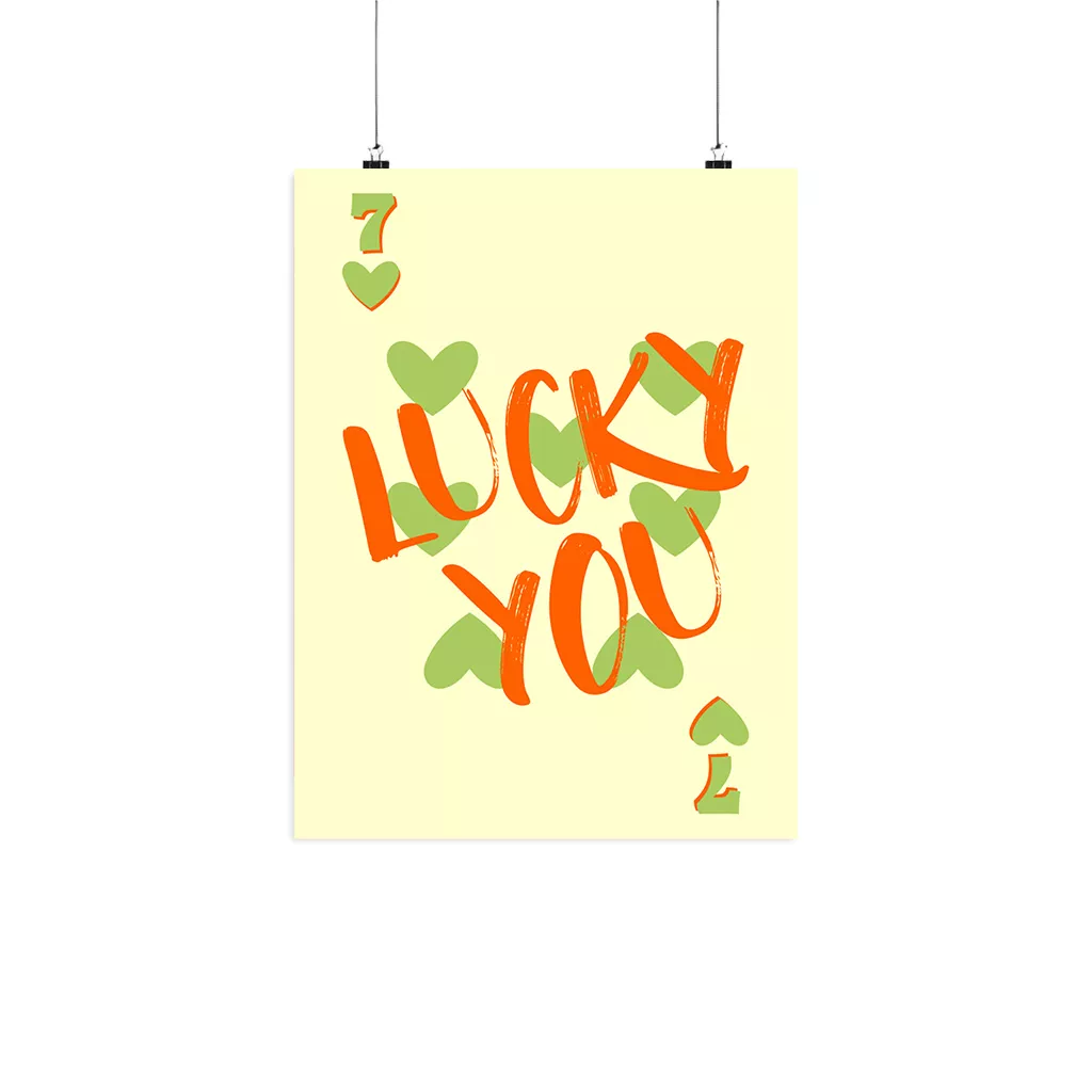 Lucky You Matte Poster is printed on museum-grade archival paper, ensuring that it will never fade or turn yellow over time. That means it’s guaranteed to preserve your creative vision with long-lasting quality and vibrant colors!