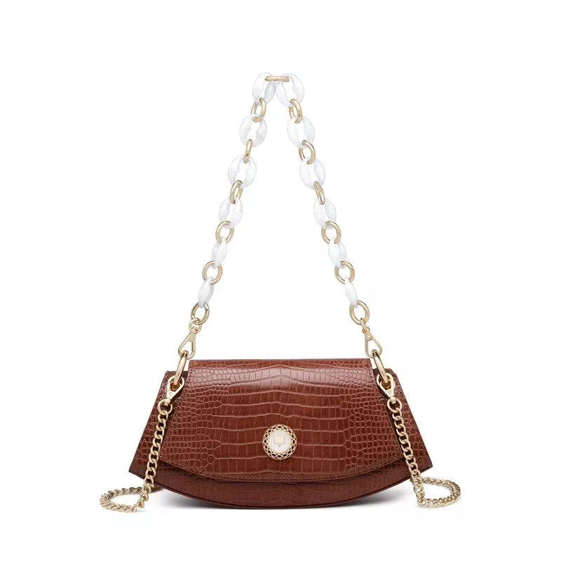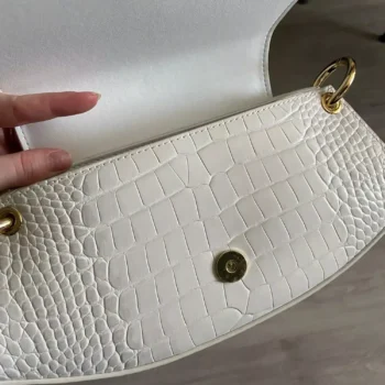 Introducing your next must-have accessory – a stunning underarm half moon bag that effortlessly combines fashion with functionality. Designed for the modern woman, this luxury evening and party saddle bag is your perfect companion for any occasion, be it a sophisticated soirée or a casual day out. With its unique alligator pattern and exquisite pearl and beading decorations, it sets you apart from the crowd, making a statement of elegance and style.