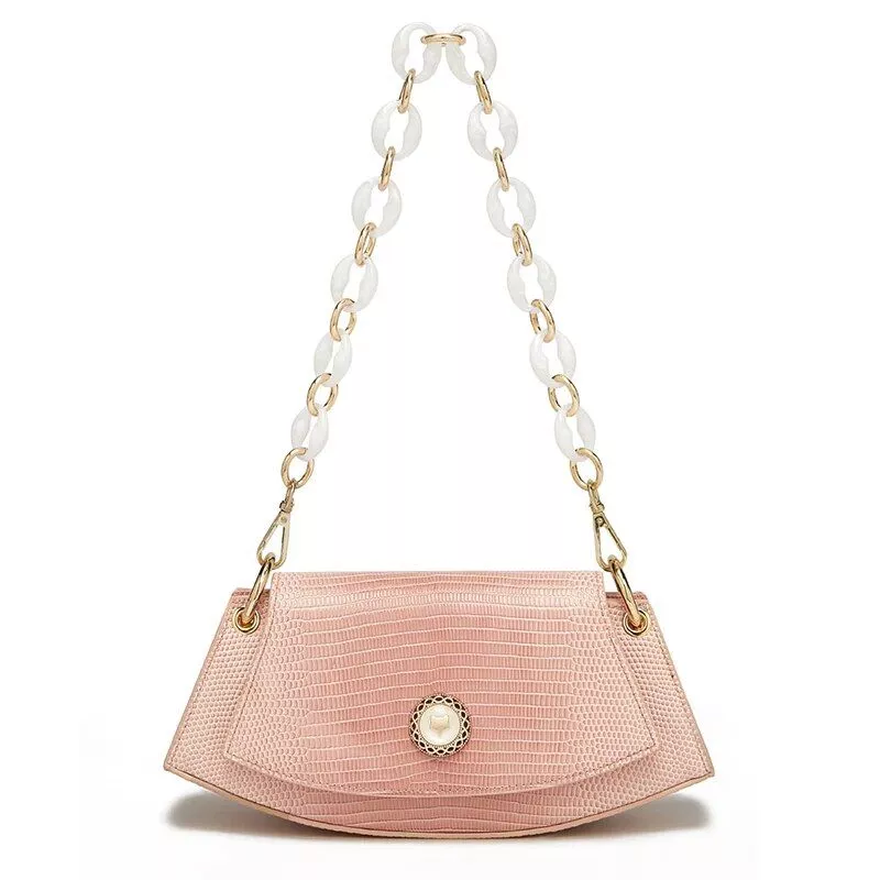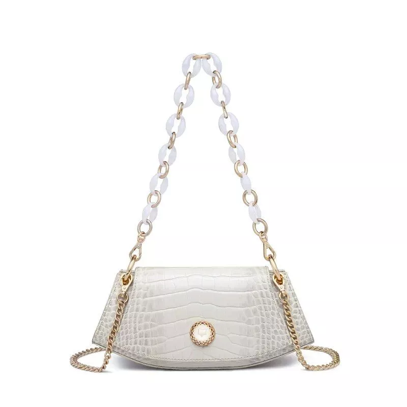 This bag isn’t just about carrying your essentials; it’s about enhancing your outfit and expressing your style. The alligator pattern imbues a sense of luxury and sophistication, while the beading and pearl decoration add a delicate touch of glamour. Its soft hardness level ensures the bag molds comfortably to your side, making it the ideal accessory for women who cherish both style and comfort.