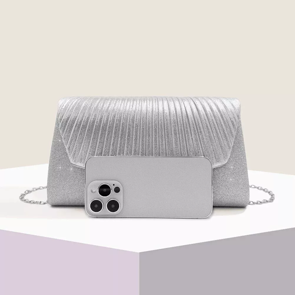 Made with premium PU and adorned with a shiny surface decoration, our evening clutch is not just a bag; it’s a statement. The durable, waterproof, and wear-resistant materials ensure your bag remains pristine, event after event. The envelope style, complemented by a luxurious metal chain, conforms to the latest fashion trends while offering versatility in how you choose to wear it. Available in stunning shades of Champagne, Gold, and Silver, there’s a perfect match for every outfit and mood.