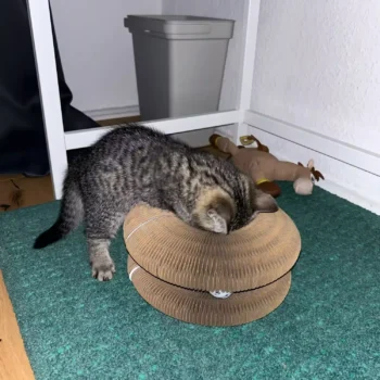 our kitty loves his new scratch board. even more so because of the added bell toy which keeps him entertained for hours on end. 🐾🔔