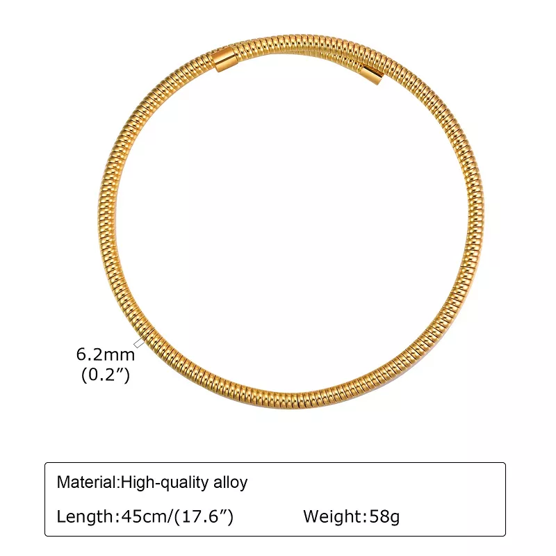 With its open design, this collar choker is not only visually striking but also highly adjustable, allowing for a comfortable fit on any neck size. The smooth, polished finish ensures a lightweight feel, making it ideal for all-day wear.