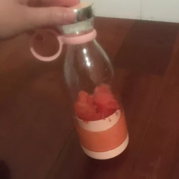 This small blender is great for making a quick smoothie. It works well unless the fruit or ice clumps up, but you can shake it or break the pieces to fix that. It's fast, doesn't take much space, and you can shake it to mix things. It's good for making a single smoothie or a small amount of food.