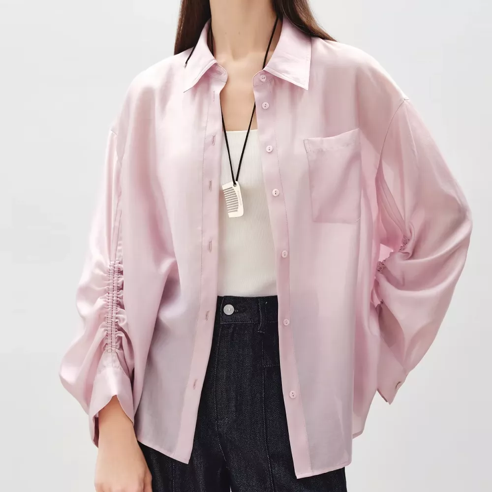 - Wide sleeves that offer a relaxed, contemporary shape