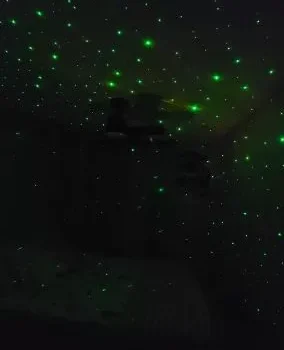 Looks super, and the nebulae move and you can change color, the stars are always green if they were white it would be perfect