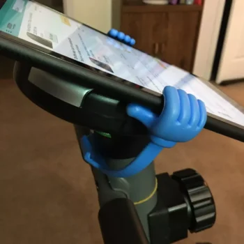 This hand-shaped holder keeps the phone steady in either orientation, which is a great idea.