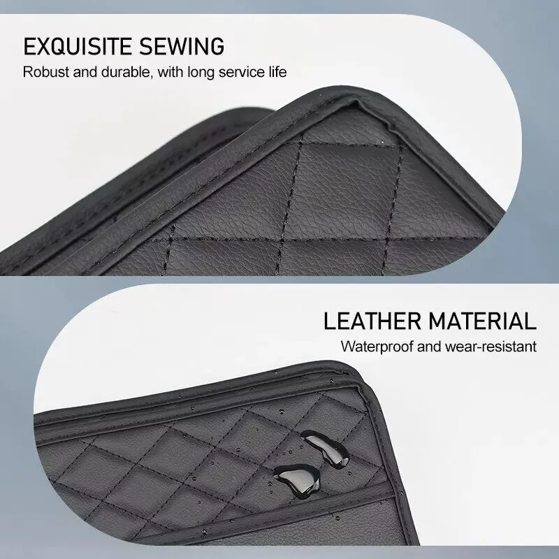 Gone are the days when you rummaged through your car in search of your phone or that elusive pack of tissues. With this organizer, you know where everything is. It’s not just about keeping things in place, but doing so with style. Given its versatile use, it’s ideal for long road trips, daily commutes, or even when you’re simply out and about. Waterproof, wear-resistant, and exquisitely crafted, this organizer promises longevity and performance. And with the chic black leather finish, it adds a dash of elegance to your car’s interior.