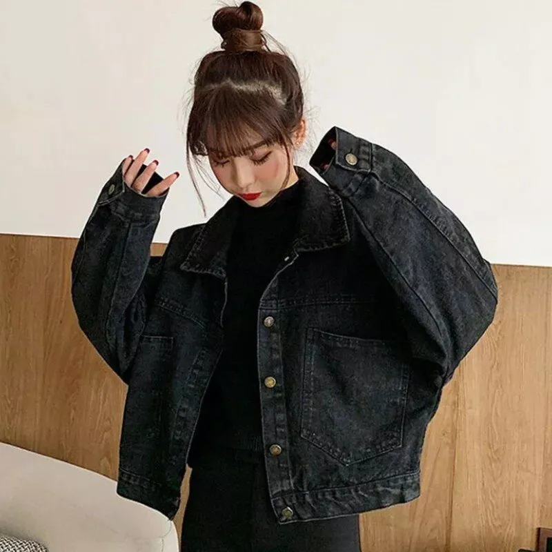 What makes this jacket special is its ability to seamlessly integrate into any middle-aged woman’s closet, providing an instant update to your personal style. Its Korean fashion influence ensures you’re at the forefront of current trends, while the cropped cut adds a modern twist to the classic denim look. It’s not just a jacket—it’s a statement of style and confidence.